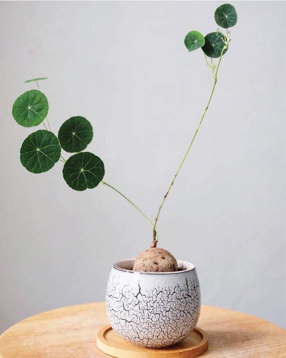 La Stephania Erecta est une plante tubéreuse qui fait partie des plantes dites caudex, dont les bulbes servent de réserve d’eau, ce qui leur donne la capacité à résister à de longues périodes de sécheresse.